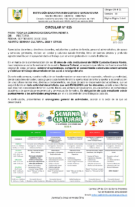 📚 Regreso a clases después de Semana Santa La Institución Educativa informa a toda la comunidad estudiantil que, luego del receso por la Semana Santa, las clases se retomarán el próximo lunes 21 de abril de 2025 en el horario habitual. Esperamos que este tiempo haya sido de descanso y